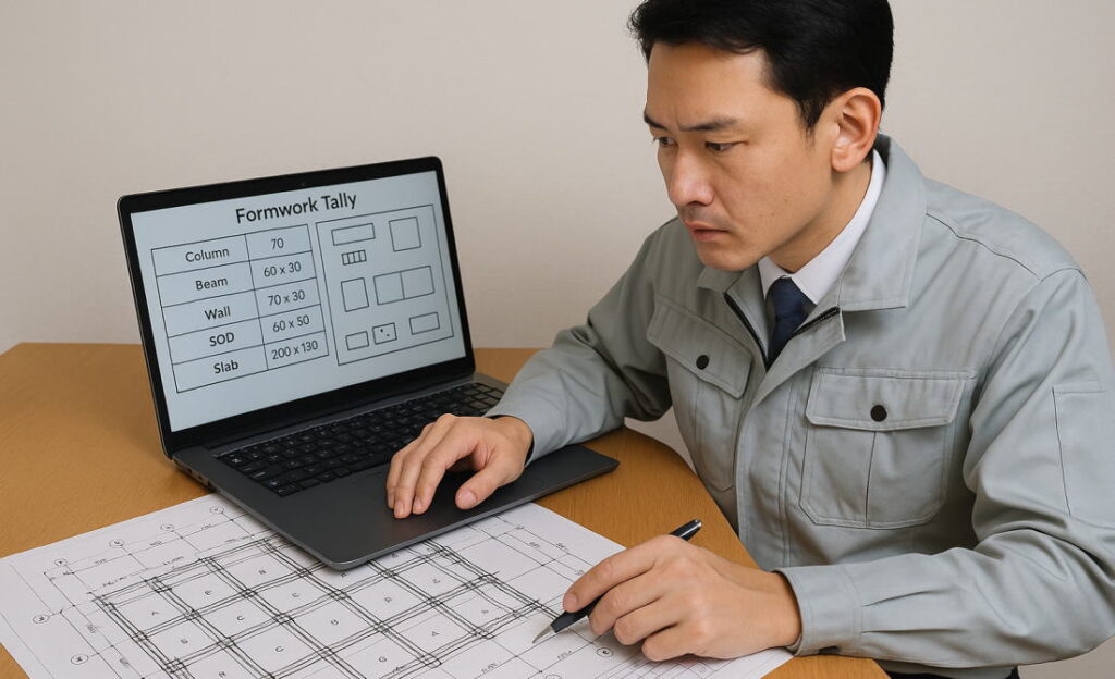 施工図面から、柱・梁・壁・床の寸法、形状をパソコンを使って拾い出し、加工図を作成したのち、必要資材の数量を積算し発注します。
