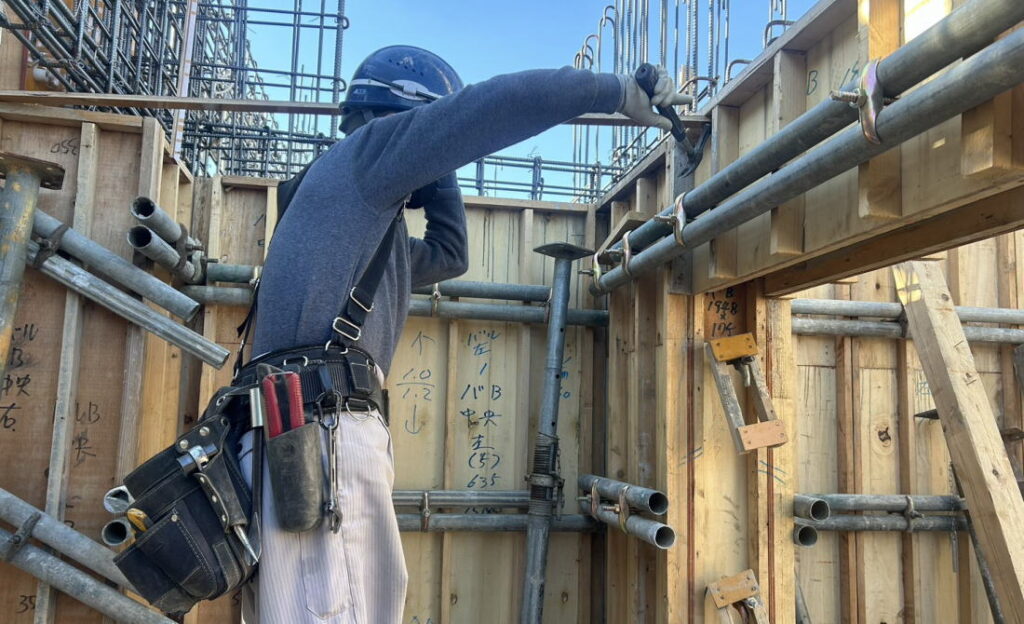 この建物の形を決める「型枠」を作り込む職人を「型枠大工」と呼び、その「型枠」取り外す職人を「型枠解体工」と呼びます。